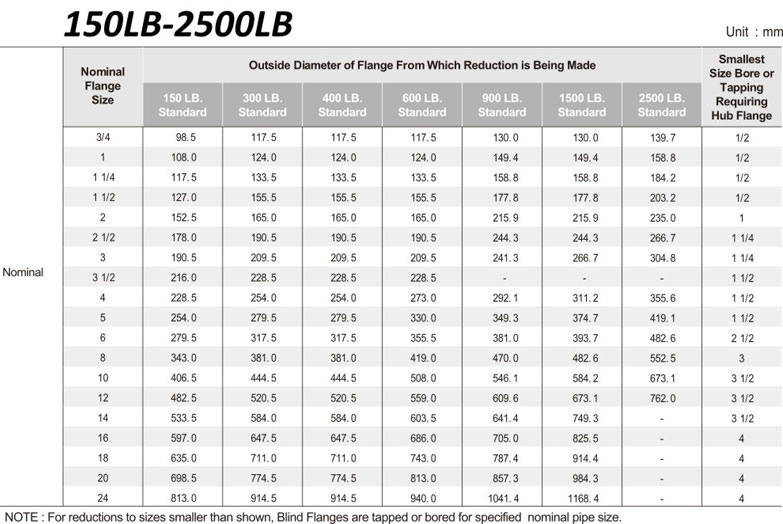 ASME B16.47series A & B | ASTM A182 (forjados) ASTM A240 (placa) | 150#. 300#. 400#. 600#. 900#. 1500#. 2500#. |